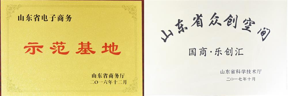 山東省跨境電商行業(yè)優(yōu)質(zhì)服務(wù)商(山東省跨境電子商務(wù)協(xié)會(huì),2017) 2018年度最受歡迎電子商務(wù)服務(wù)機(jī)構(gòu)(山東省電子商務(wù)促進(jìn)會(huì),2018) 電子商務(wù)創(chuàng)新園區(qū)("國際電子商務(wù)服務(wù)產(chǎn)業(yè)博覽會(huì)山東省電子商務(wù)促進(jìn)會(huì)",2016) 山東省電子商務(wù)示范基地(山東省商務(wù)廳,2016) 山東省眾創(chuàng)空間(山東省科學(xué)技術(shù)廳,2017)